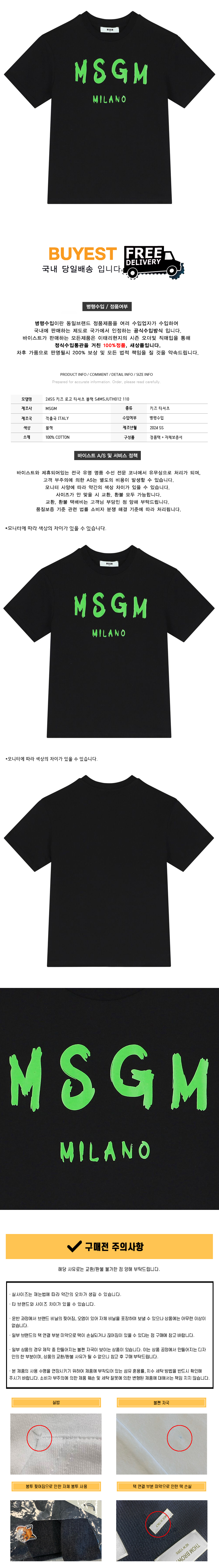 * 모 델 명 : 24SS 키즈 로고 티셔츠 블랙 S4MSJUTH012 110