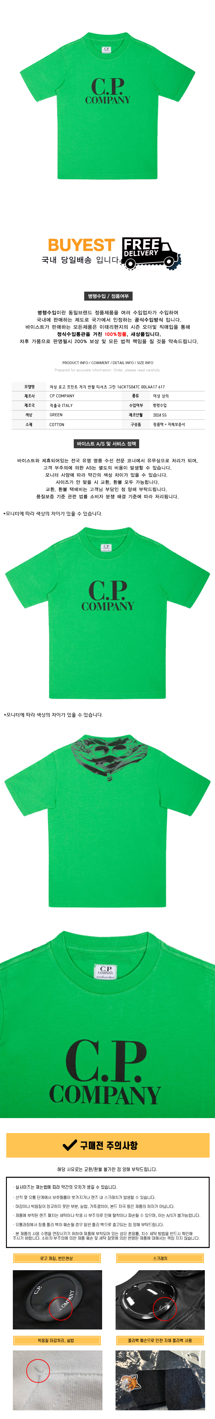 * 모 델 명 : 여성 로고 프린트 저지 반팔 티셔츠 그린 16CKTS047C 00LAA17 617