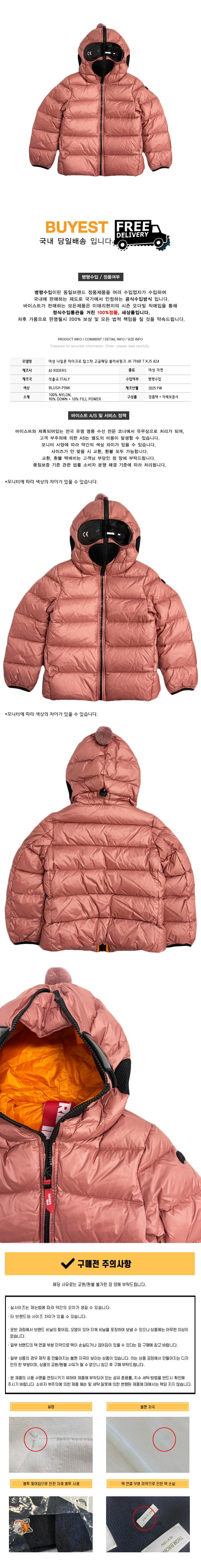 * 모 델 명 : 여성 나일론 마이크로 립스탁 고글패딩 블러쉬핑크 JK 794B T KJ5 424