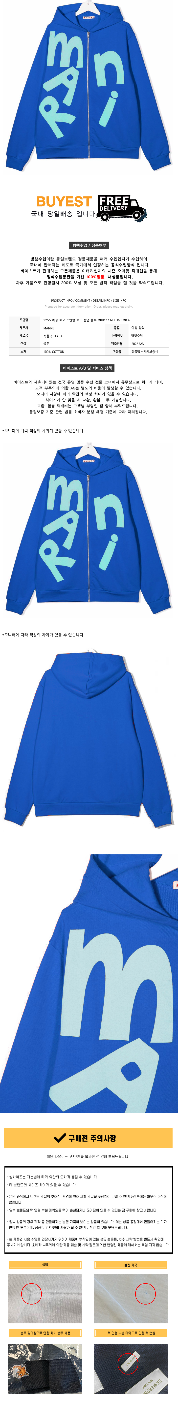 * 모 델 명 : 22SS 여성 로고 프린팅 후드 집업 블루 M00457 M00J6 0M839