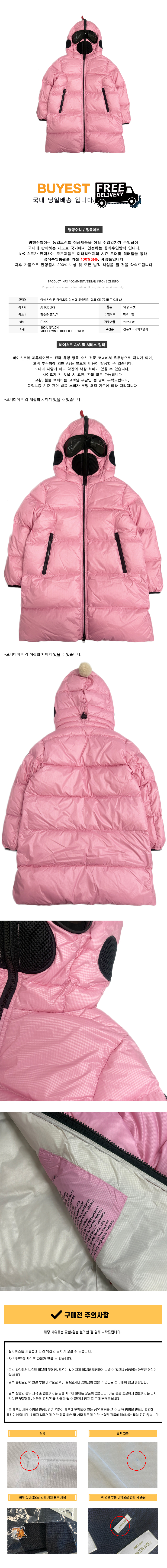* 모 델 명 : 여성 나일론 마이크로 립스탁 고글패딩 핑크 CK 796B T KJ5 46