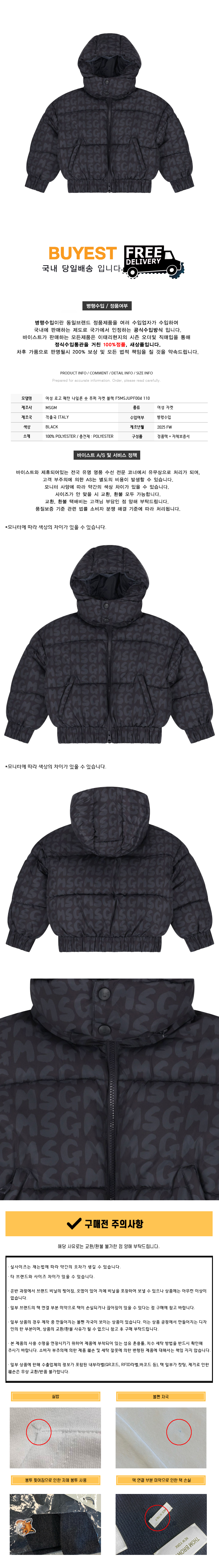 * 모 델 명 : 여성 로고 패턴 나일론 숏 푸퍼 자켓 블랙 F5MSJUPF004 110